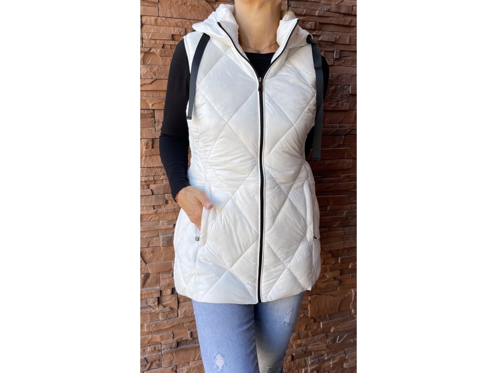 Dámska štýlová predĺžená vesta s kapucňou. Svoju veľkosť si správne zvoľte v tabuľke veľkostí.