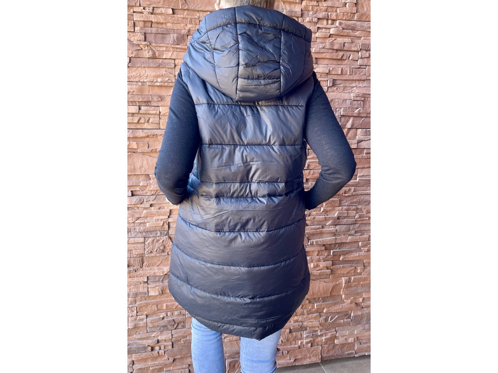 Dámska štýlová predĺžená vesta s kapucňou. Svoju veľkosť si správne zvoľte v tabuľke veľkostí.