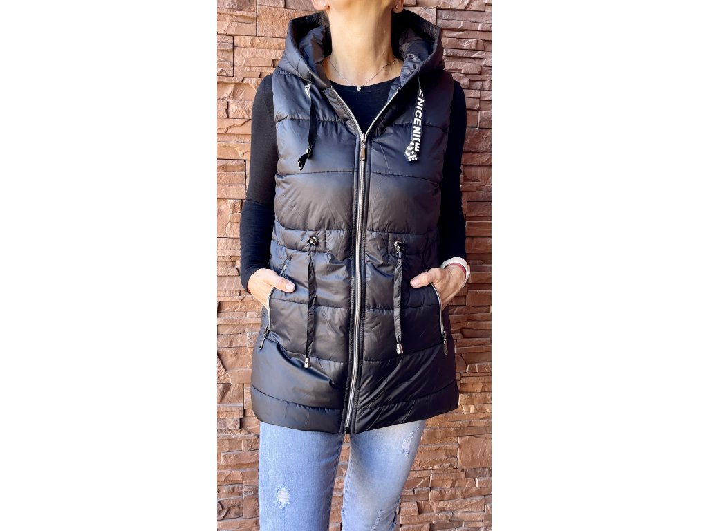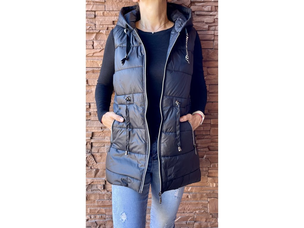 Dámska predĺžená vesta s kapucňou 908 čierna